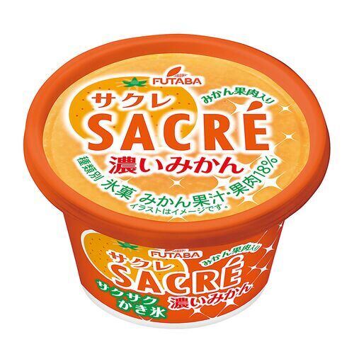 濃い目のみかん味かき氷に、カットしたみかん果肉を混ぜ込みました。いつものサクレより氷粒を小さくしたことで、くちどけの良いマイルドなひんやり感をお楽しみいただけます。
