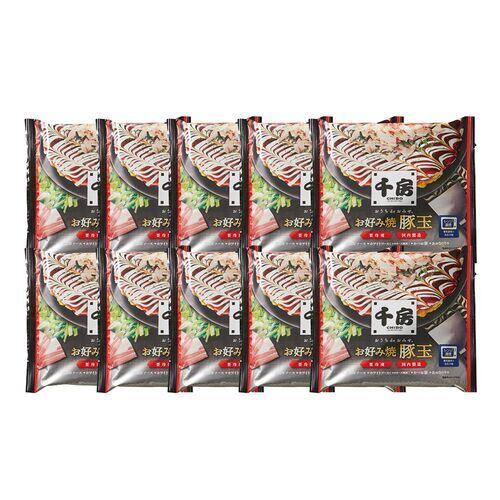 大阪千日前にて1973年創業のお好み焼の名店「千房」の味をご家庭で。特製のお好み焼ミックス粉を使い、ふっくらと焼き上げたお好み焼豚玉が10枚入った、自家需要向けのお買い得セットです。とっても便利なトレー付きで、電子レンジで温めるだけで手軽にお召し上がりいただけます。
