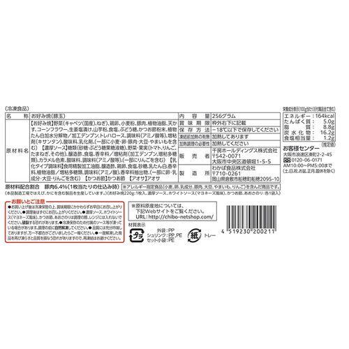 ■原材料名/食品添加物:お好み焼:野菜(キャベツ、ねぎ)、鶏卵、小麦粉、豚肉、植物油脂、天かす、コーンフラワー、生姜塩漬け、山芋粉、食塩、ぶどう糖、かつお節粉末、植物たん白加水分解物/加工デンプン、トレハロース、調味料(アミノ酸等)、増粘剤(キサンタン)、酸味料、乳化剤、(一部に小麦・卵・豚肉・大豆・やまいもを含む)、濃厚ソース:糖類(砂糖・ぶどう糖果糖液糖)、野菜・果実(トマト、りんご、たまねぎ、その他)、醸造酢、食塩、香辛料/増粘剤(加工デンプン、増粘多糖類)、カラメル色素、酸味料、調味料(アミノ酸等)、(一部にりんごを含む)、乳化タイプ調味料:食用精製加工油脂、醸造酢、鶏卵、食塩、砂糖、乳たん白、香辛料、植物油脂/増粘多糖類、調味料(アミノ酸)、香辛料抽出物、(一部に卵・乳成分・大豆・りんごを含む)、かつお節:かつお節、アオサ:アオサ