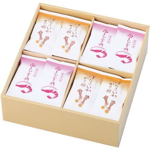 富山湾の深海に生息する白えびとほたるいかを使用し、サクッとした食感のおかきです。
