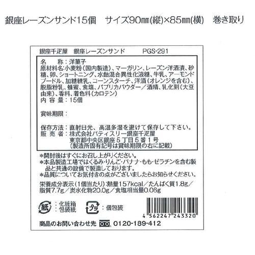 ■規格:レーズンサンド15個